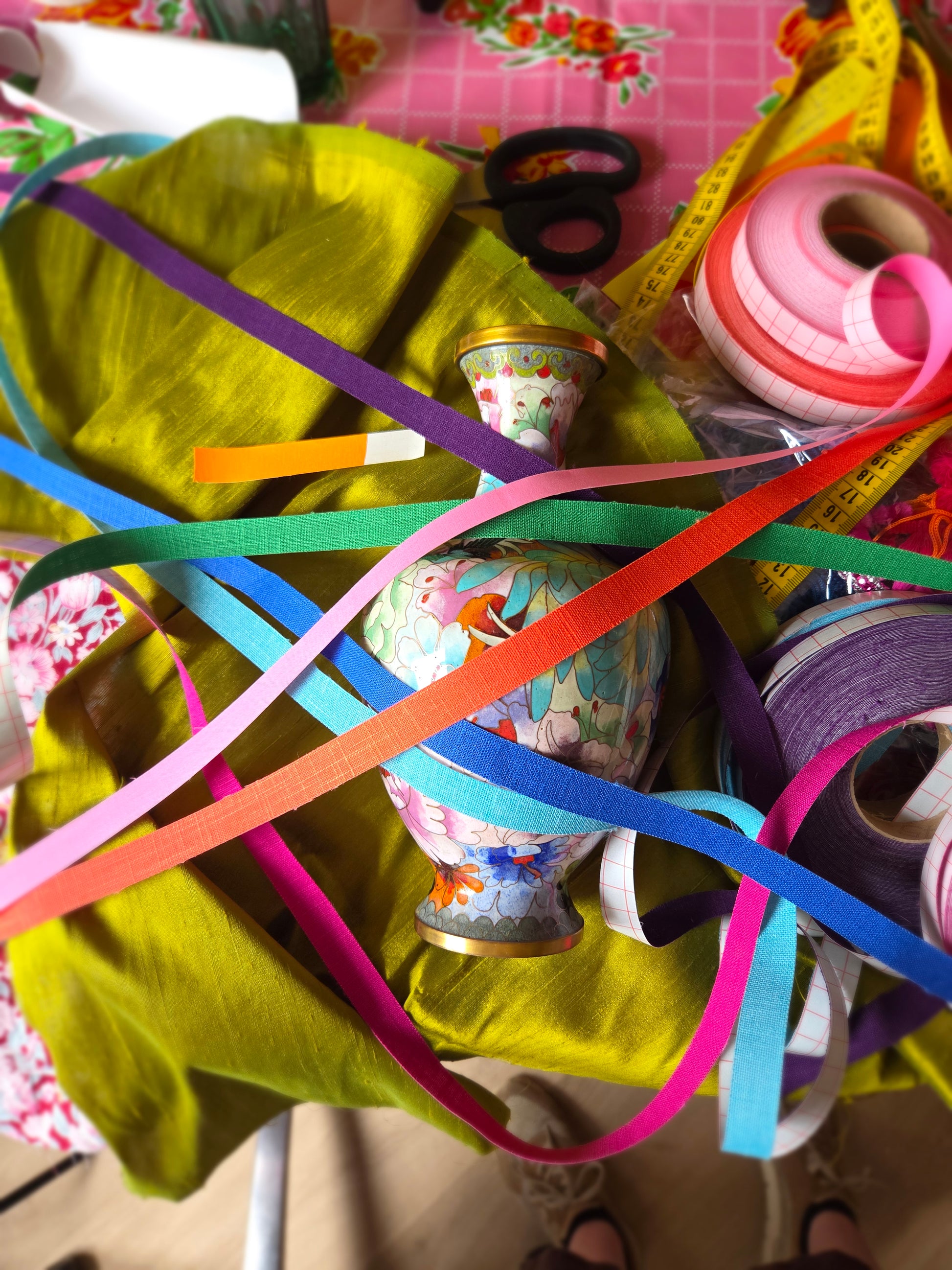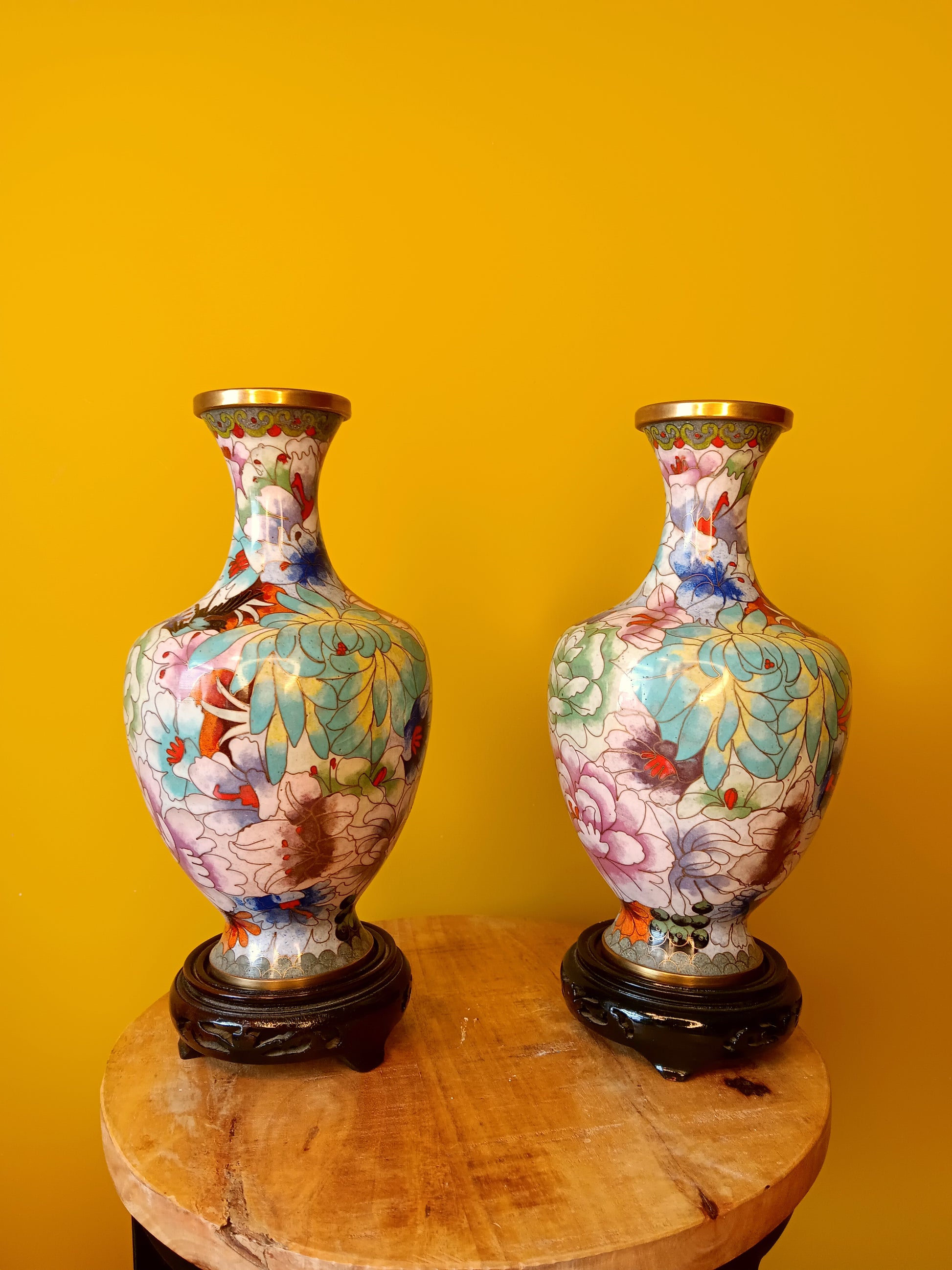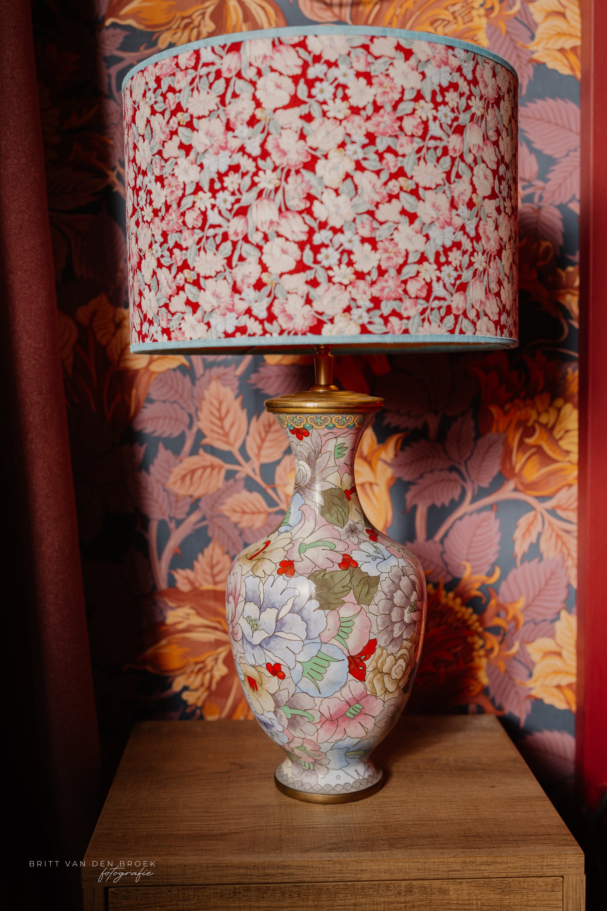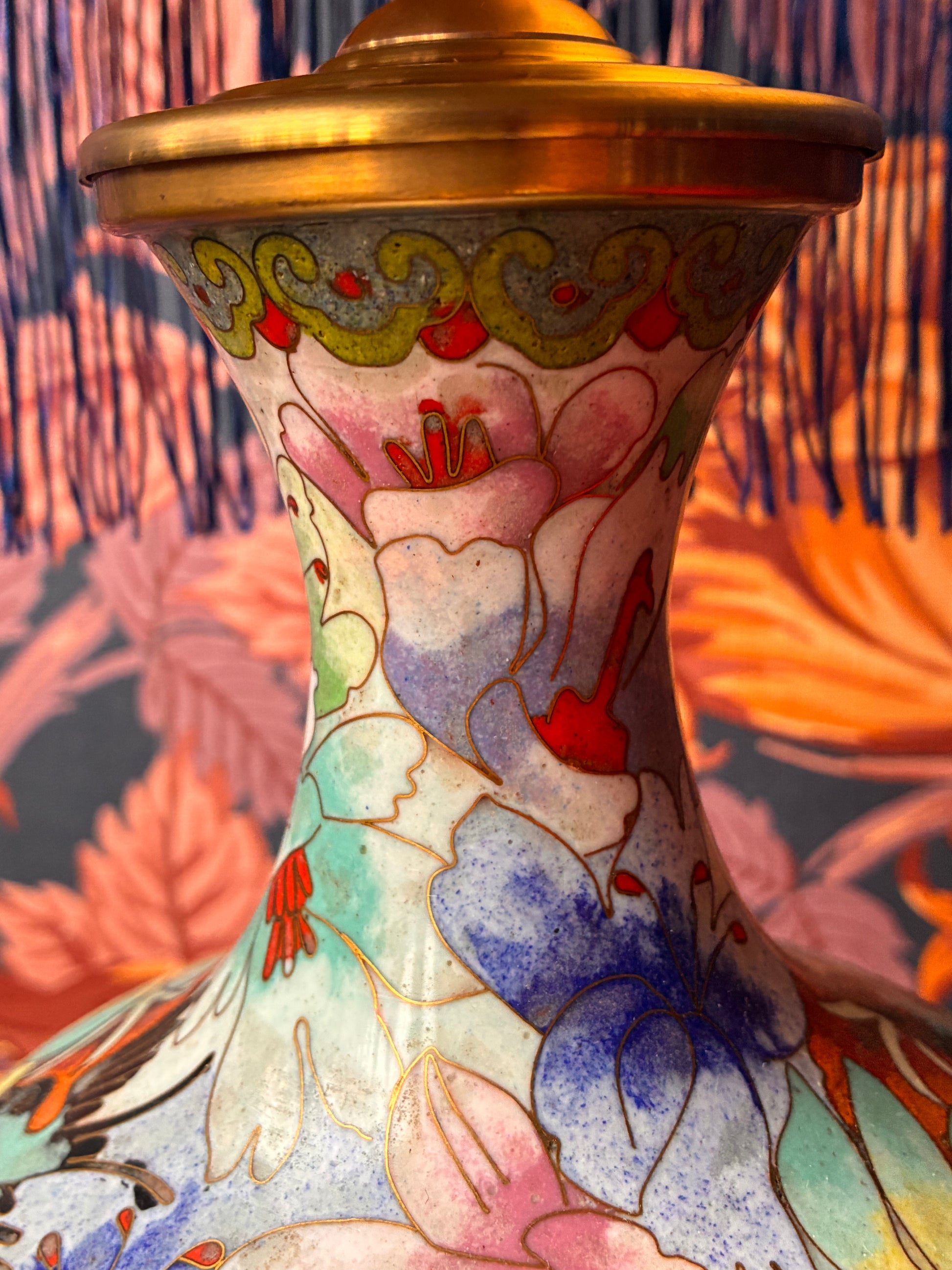 Cloissoné-vaaslampenvoet met bloemen