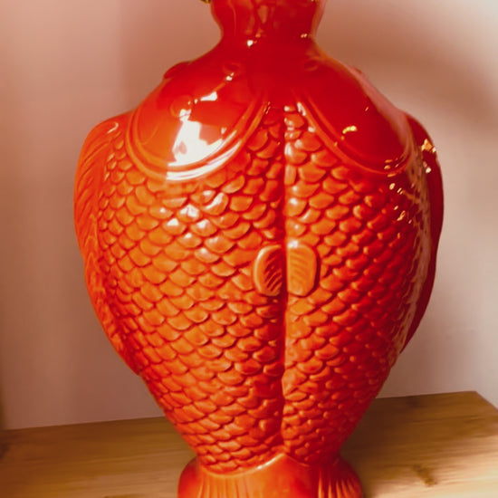 Deze advertentie is voor één oranje vislampenvoet. Één van de twee is verkocht; de andere is nog beschikbaar. Leuk om te combineren met een lampenkap naar wens. Er zijn verschillende afmetingen mogelijk.